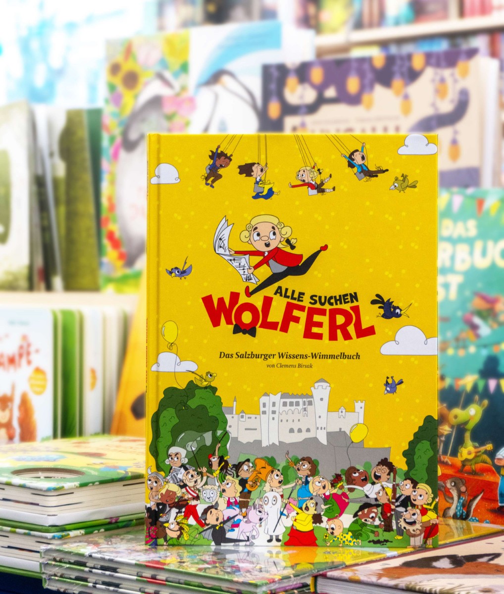 „Alle Suchen Wolferl“ ist ein Wissens-Wimmelbuch über die Stadt Salzburg. Das Wimmelbild wird zum Werkzeug für Kunst- und Kulturvermittlung, so verbinden sich Suchspaß und Lernspaß zu einem Buch. Wolferl und sein Vogel Herr Star, sowie Wolferls Familie und sein Nachbar Anton führen uns durch verschiedene Orte in Salzburg. Überall gibt es etwas Neues zu lernen.