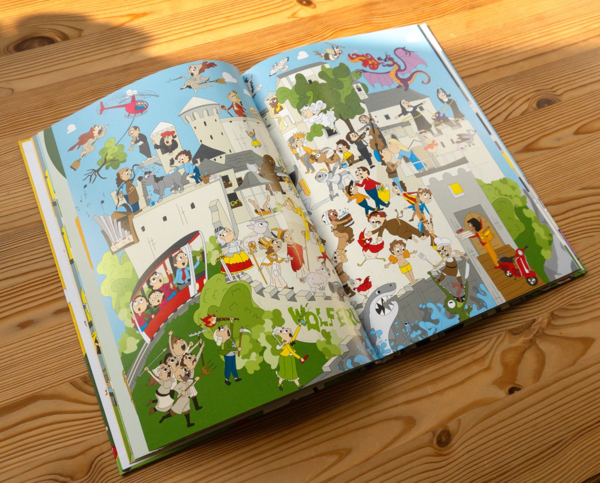 Auf der Wissens-Seite zum jeweiligen Wimmelbild erzählen Figuren wie Papageno, der Tod, Kaiser Franz Joseph und sogar Guidobald von Thun und Hohenstein ihre Geschichten. Wer ist Guidobald? Ihn und viele weitere Figuren lernst du im Salzburger Wissens-Wimmelbuch kennen.